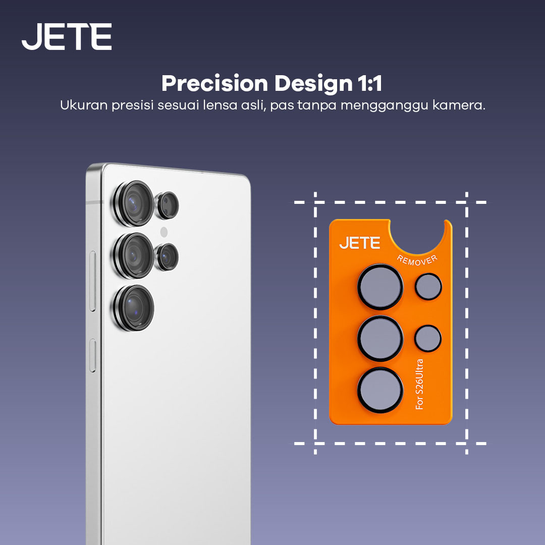 JETE Shield Pro adalah pelindung khusus lensa kamera untuk smartphone Samsung S26 Ultra. Materialnya berkualitas premium memberikan proteksi yang optimal terhadap goresan, benturan, dan kotoran. Pemasangannya sangat mudah dan praktis hanya dalam hitungan detik.