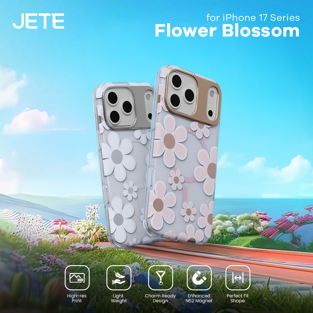 Case JETE Flower Blossom for iPhone 17 adalah pelindung bodi iPhone yang dirancang dengan desain yang cheerful. Kualitas material dan warna terbaik, ringan, dan nyaman digenggam. Magnetnya merekat kuat dan pas dengan bodi smartphone. Kompatibel dengan charm, menjadikannya stylish sepanjang hari.