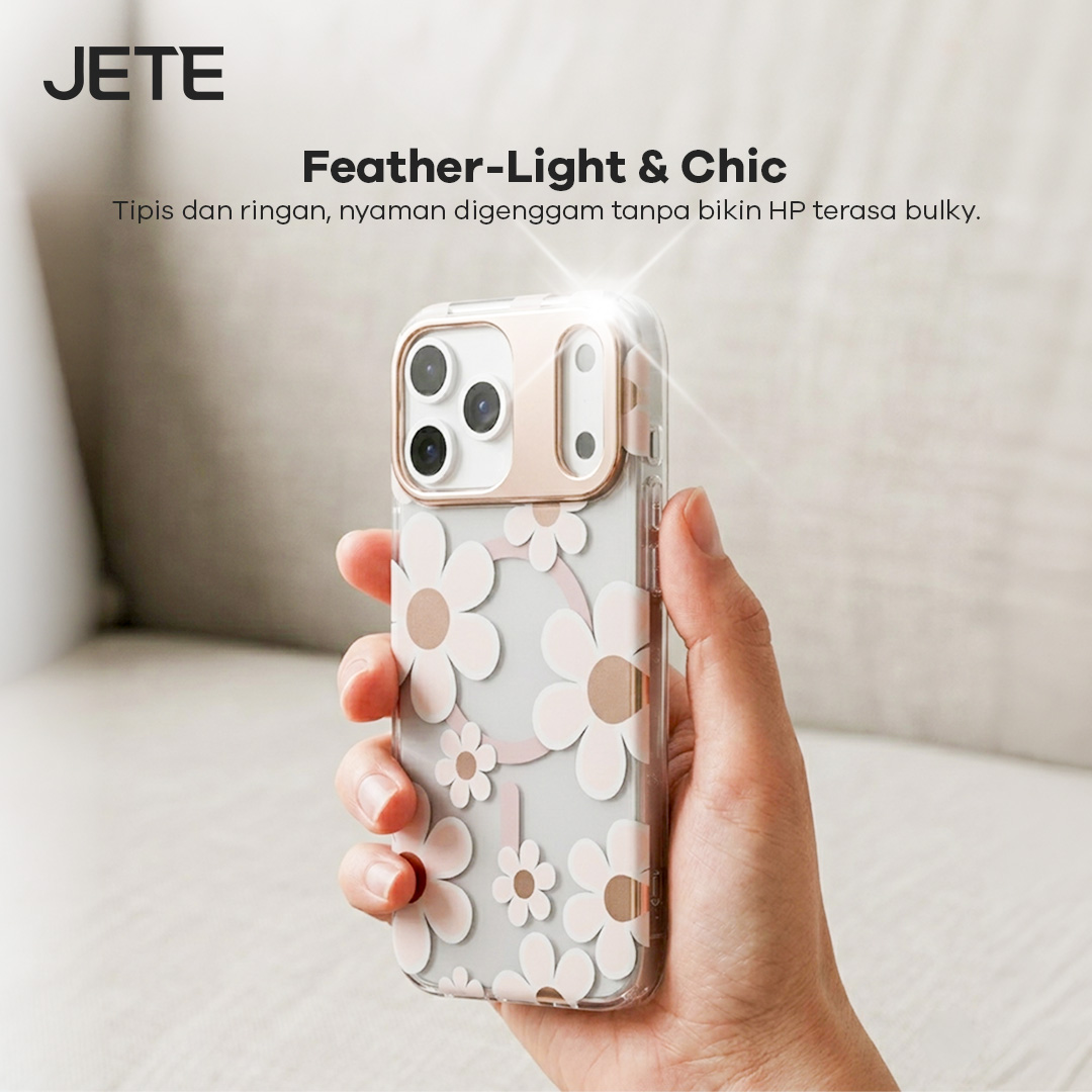 Selain dibuat dengan material berkualitas premium yang unggul, case JETE Flower Blossom for iPhone 17 tetap mempertahankan desain ergonomisnya. Ini bisa dilihat dari bentuk pelindung HP yang tipis namun kuat. Di samping itu, bobotnya pun sangat ringan. Membuatnya terasa nyaman saat digenggam tanpa menjadikan smartphone terlihat lebih tebal (bulky).