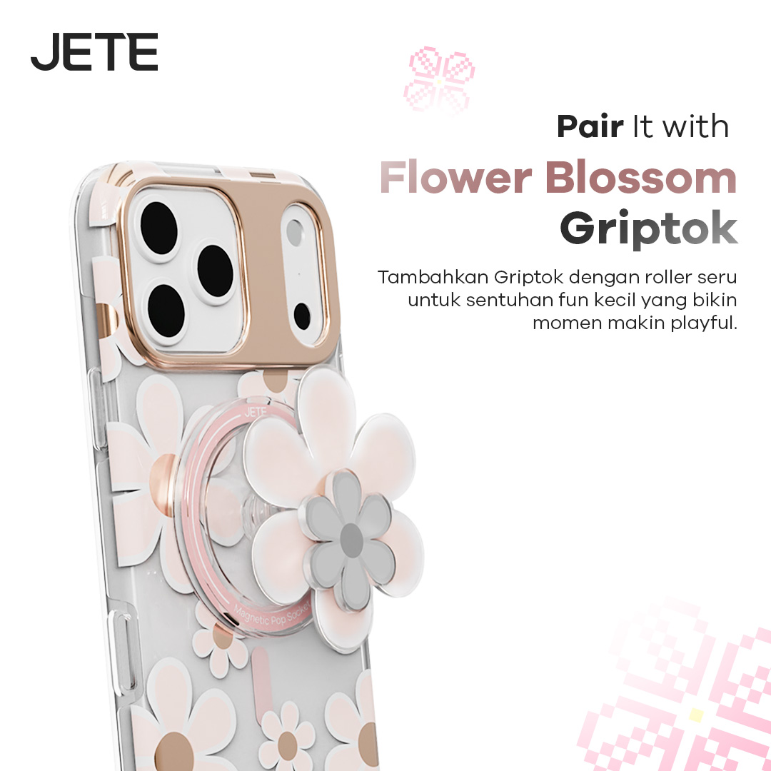Padupadankan case JETE Flower Blossom-mu dengan griptok dengan tema yang sama dari JETE. Selain membuat tampilan lebih serasi dan playfull. Griptok tidak hanya membuat ponsel nyaman dibawa, tetapi juga memiliki spinner yang bisa diputar serta dapat digunakan pada mode stand untuk kenyamanan terbaik saat nonton konten favorit.