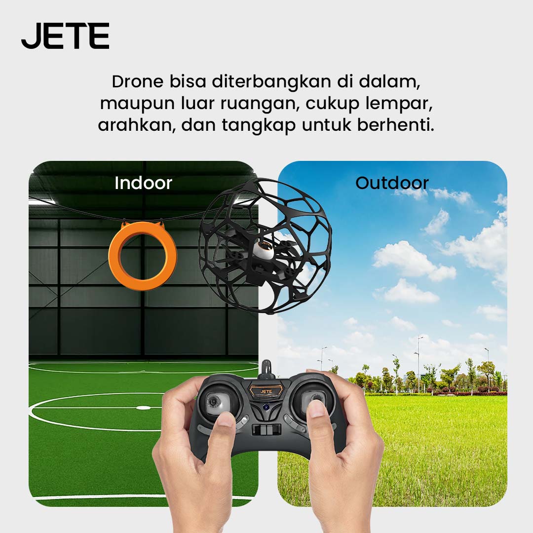 JETE DS1 adalah drone soccer pertama di Indonesia. Mainkan dengan mudah di mana saja kamu inginkan. Mulai di rumah, sekolah, hingga kompetisi. Baik dimainkan secara individu maupun tim. Cocok untuk mengasah ketangkasan dan motorik.
