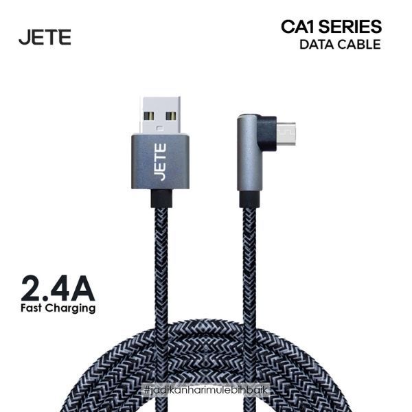 Kabel dengan material nylon braided premium (Dikepang) dimaksudkan untuk membuat kabel Jete CA1 ini semakin kuat sehingga masa penggunaan semakin lama, selain itu kabel ini membawa fitur kecepatan transfer data hingga mencapai 5Gbs. Ujung kabel di buat sepertu Huruf L untuk mempermudah penggunaan saat bermain game dan mencharge dalam waktu yang bersamaan.