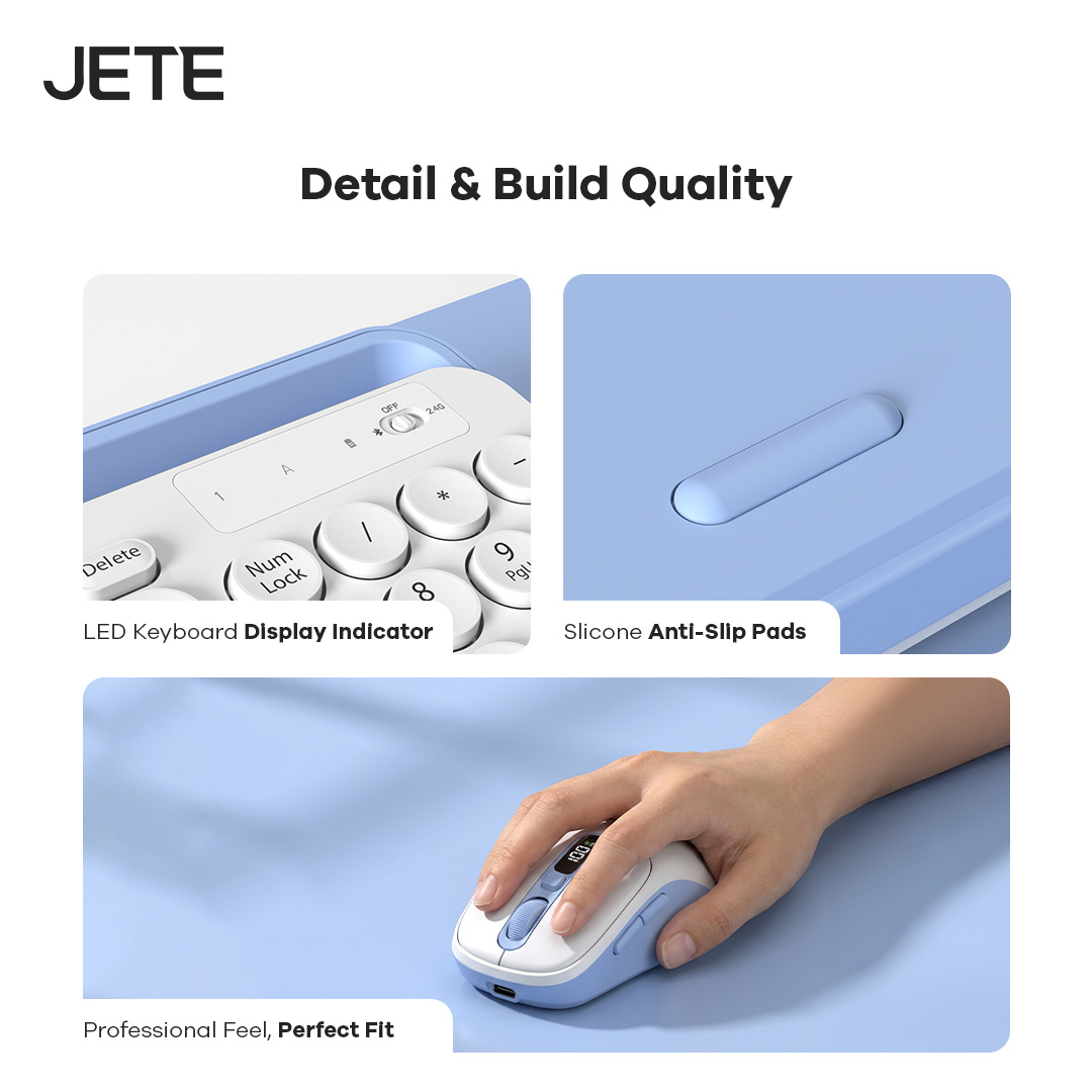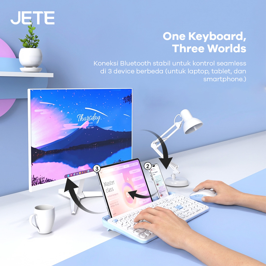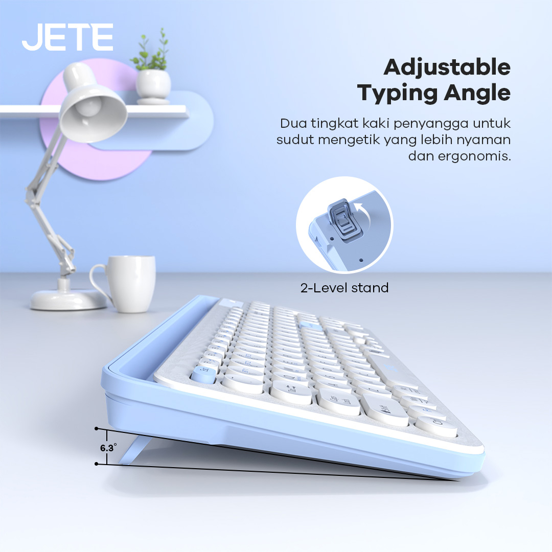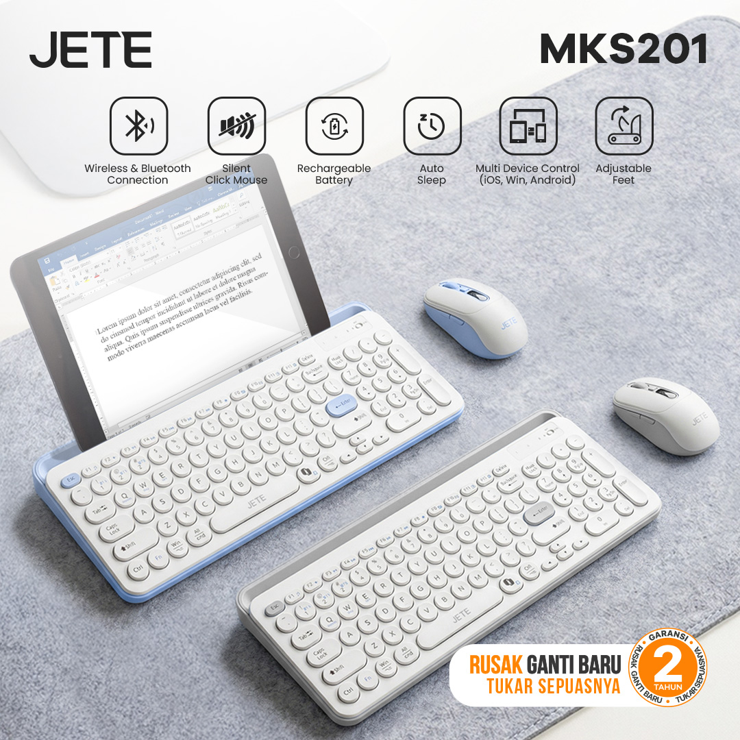 Combo keyboard dan mouse JETE MKS201 adalah solusi perangkat kerja yang praktis. Desainnya ringkas dengan warna stylish serta fitur unggulannya membuat bekerja semakin nyaman dan mengingkatkan produktivitas serta konsentrasi sepanjang hari.