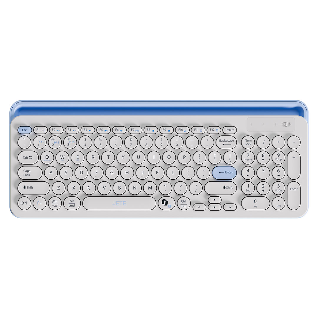 JETE MKS201 hadir dalam dua warna yang stylish yakni White Grey dan White Blue. Jika kamu menginginkan suasana meja kerja yang elegan dan premium, warna White Grey sangat ideal untuk dipilih. Terlihat praktis dan warna menyatu dengan meja kerja serta terlihat netral.