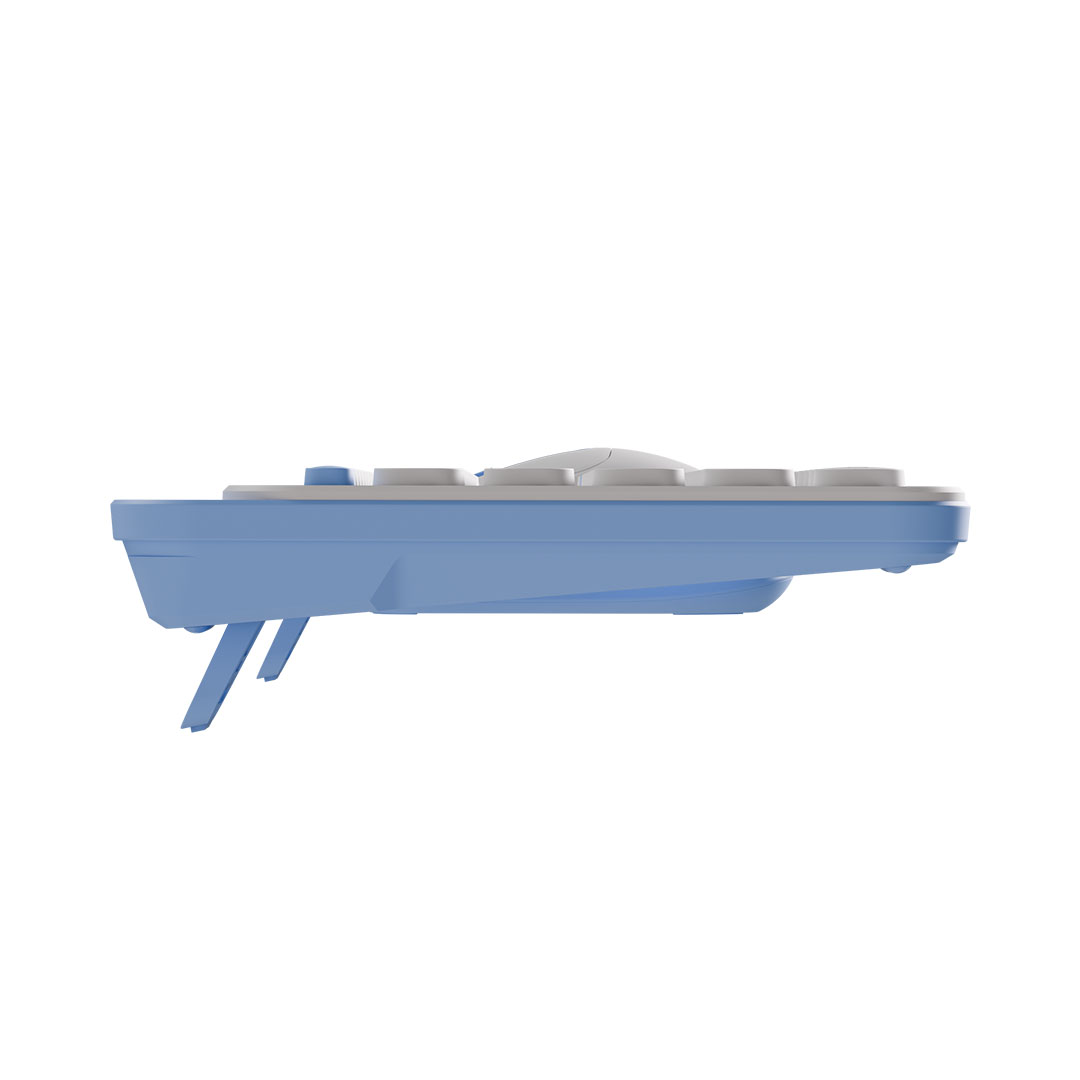 Pada bagian bawah keyboard dilengkapi dengan dua buah kaki penyangga. Pengguna dapat menyesuaikannya dengan kebutuhan. Atur sudut mengetik lebih nyaman dengan posisi tangan. Terutama untuk menunjang kerja dalam waktu lama.