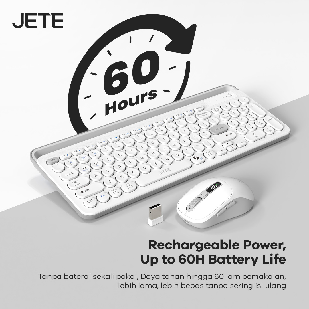 Kini, kamu tak perlu sering mengganti baterai saat daya habis. JETE MKS201 dibekali dengan baterai isi ulang yang dapat bertahan hingga 60 jam pemakaian normal. Pengguna pun bebas khawatir saat menggunakannya dan lebih leluasa tanpa harus sering mengisi ulang.