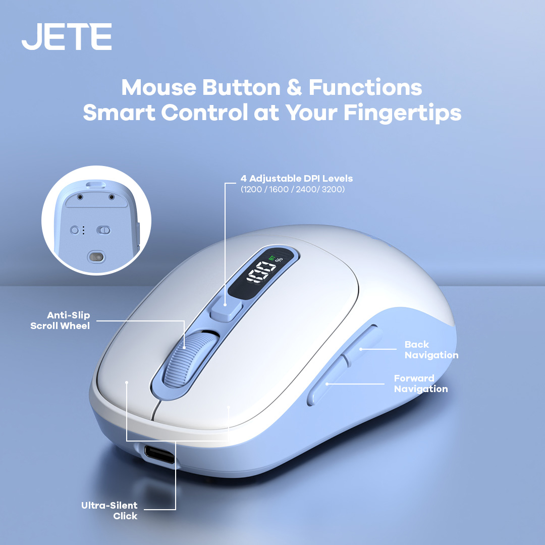 Mouse pelengkap JETE MKS201 memiliki desain yang nyaman digenggam dan mengikuti kontur tangan. Tingkat DPI-nya mudah disesuaikan, tombol lebih lengkap dan senyap, serta scroll wheel yang anti-slip mendukung kerja berat dan meningkatkan konsentrasi.