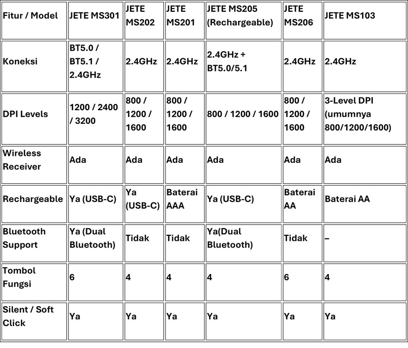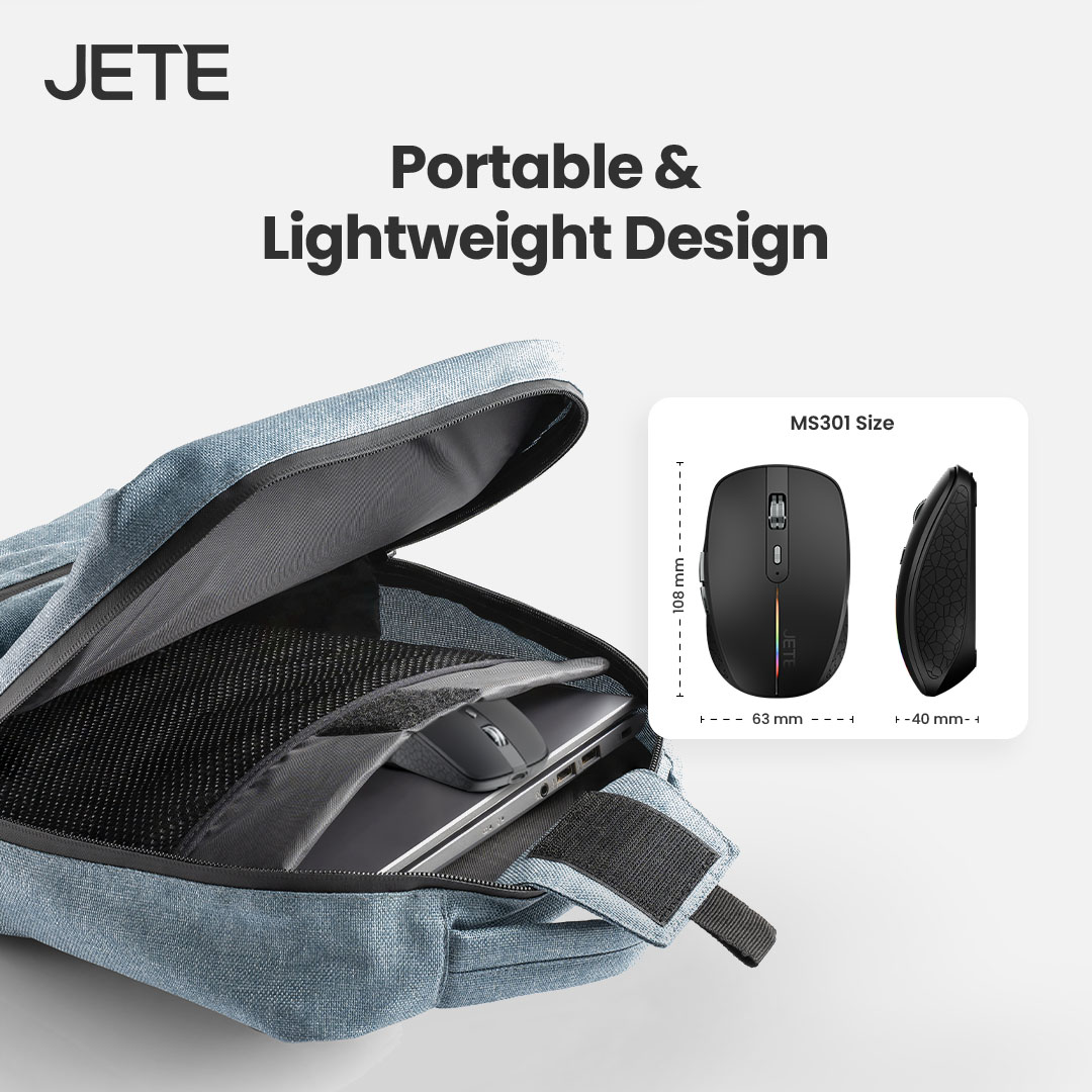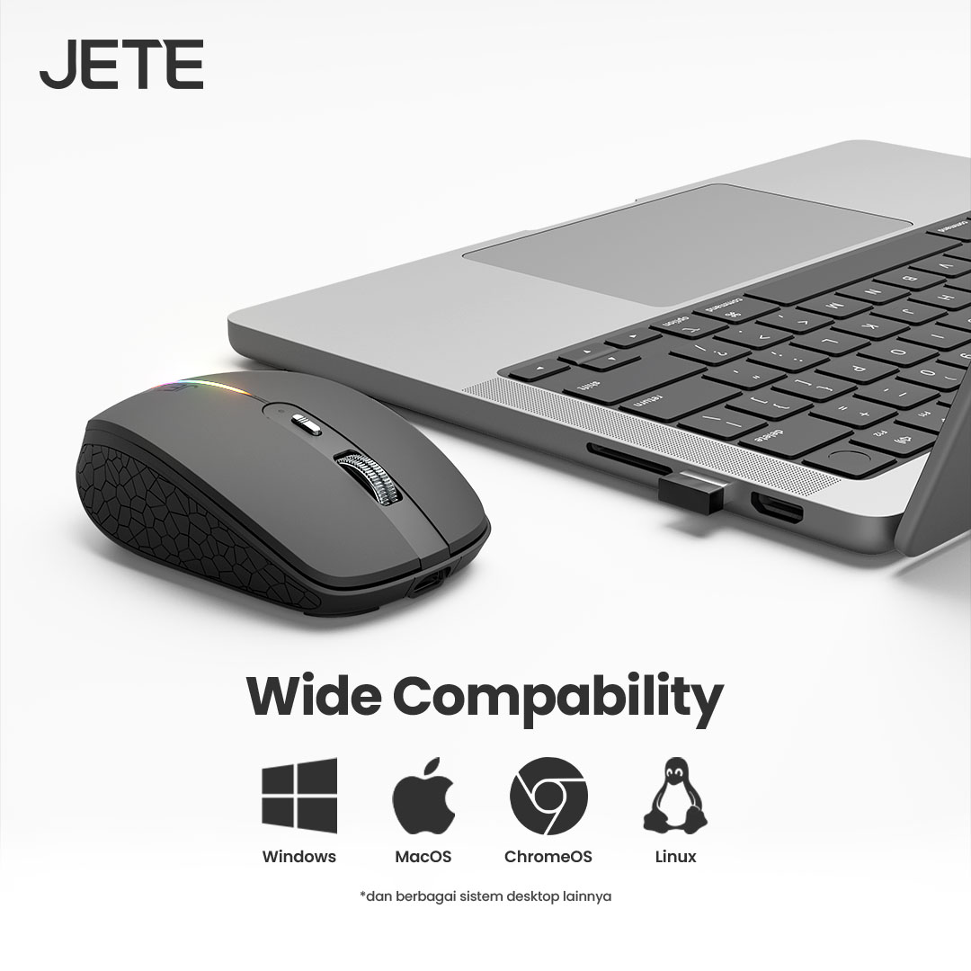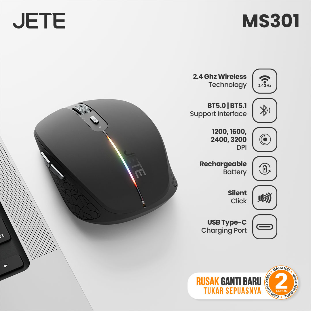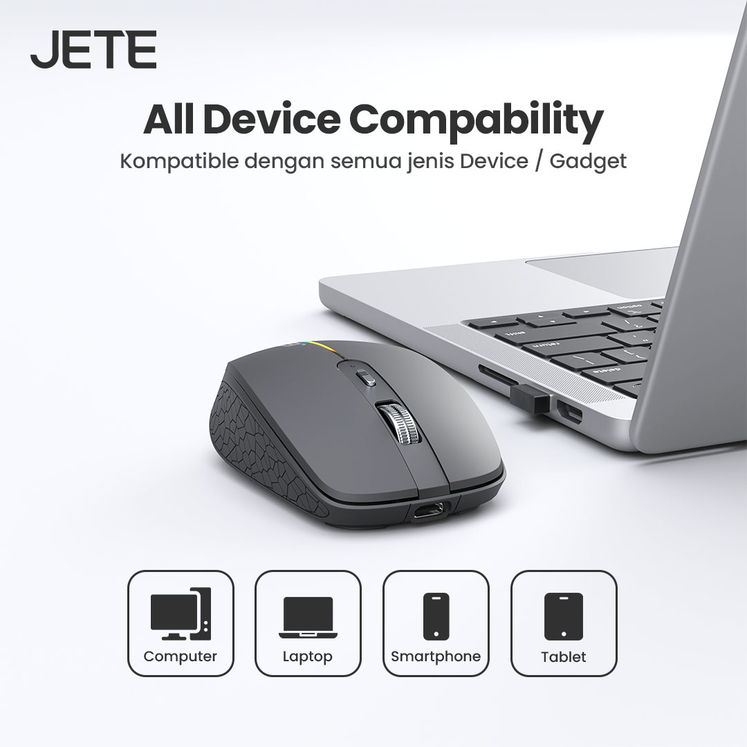 Selain kompatibel di berbagai sistem operasi, JETE MS301 kompatibel pula di berbagai perangkat device yang mendukung. Mulai dari penggunaan untuk komputer desktop, laptop, smartphone, hingga tablet. Lebih praktis, tanpa harus sering ganti mouse di banyak perangkat.