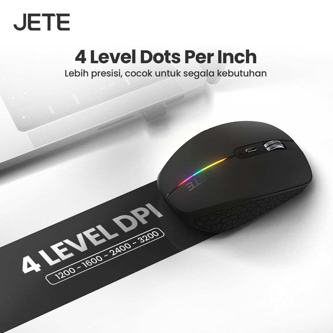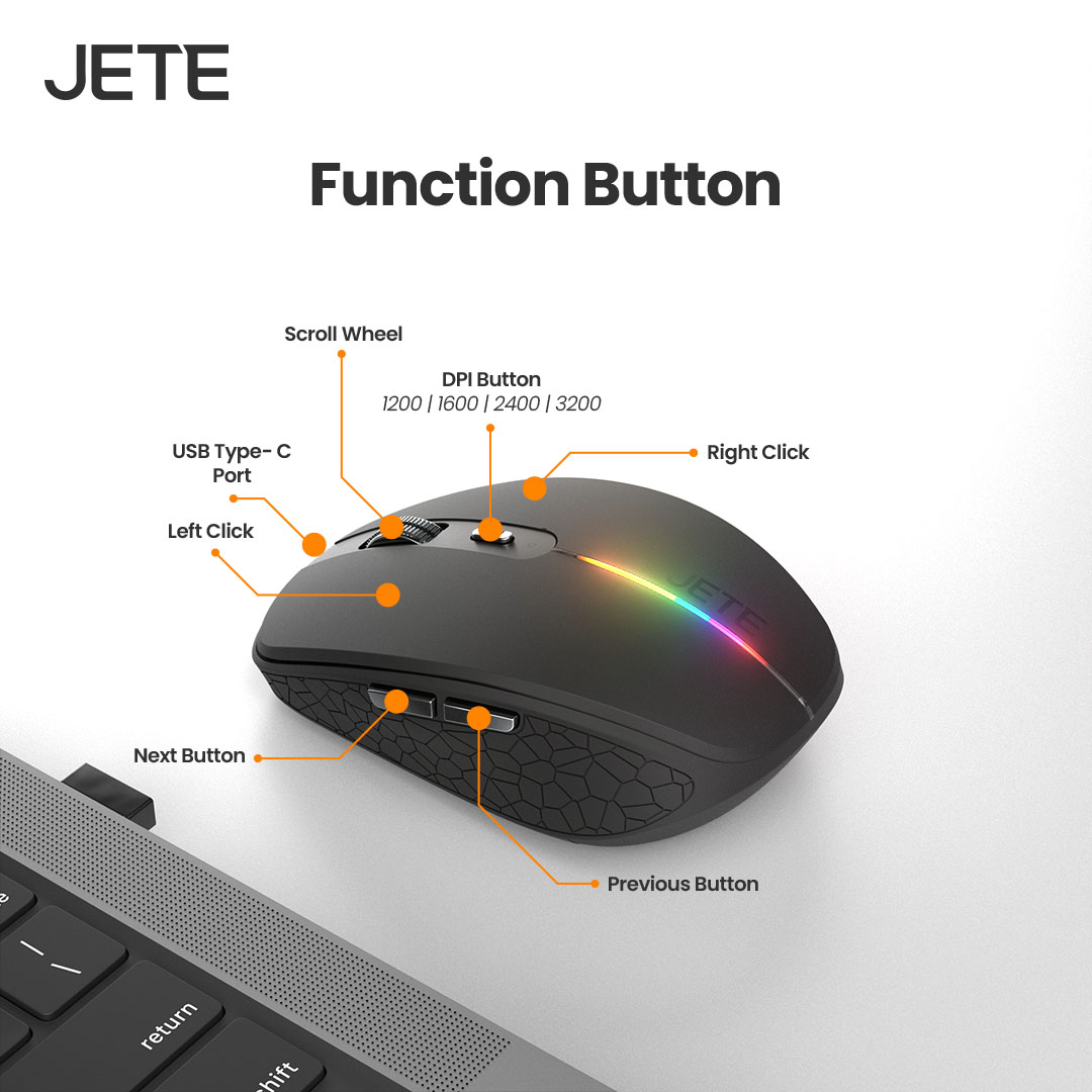 JETE MS301 menggabungkan desain nyaman, performa stabil, dan koneksi praktis tanpa repot mengganti baterai. Dengan DPI yang dapat disesuaikan, setiap gerakan terasa lebih presisi dan responsif.
