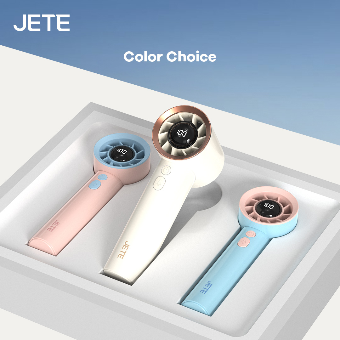 Kipas mini portable JETE TF2 tersedia dalam tiga pilihan warna menarik. Blue menghadirkan nuansa tenang dan profesional, Pink tampil ceria dan ekspresif, sedangkan White memberi kesan elegan. Pilih warna favoritmu dan sesuaikan dengan gaya fashion di setiap aktivitas.