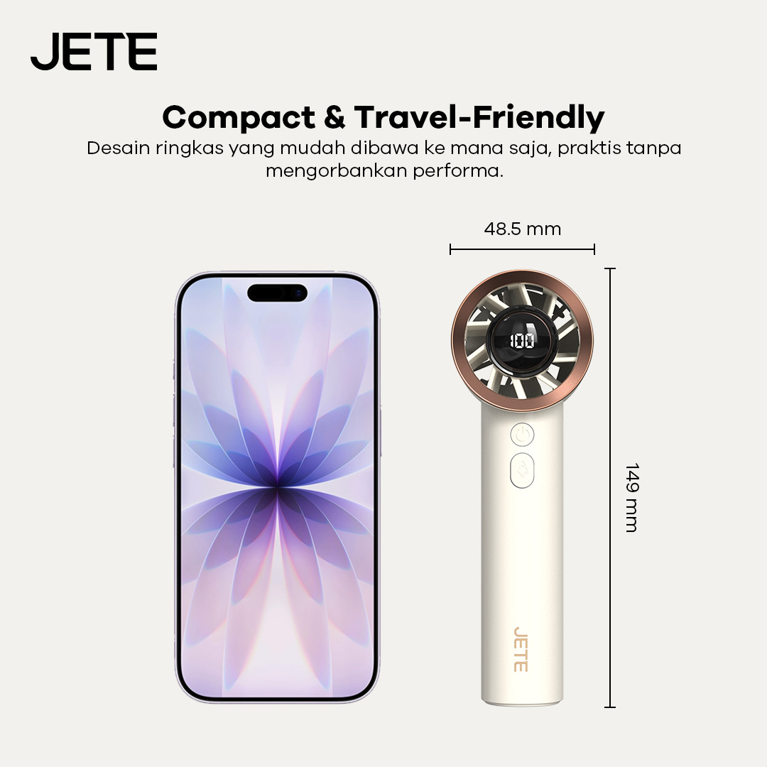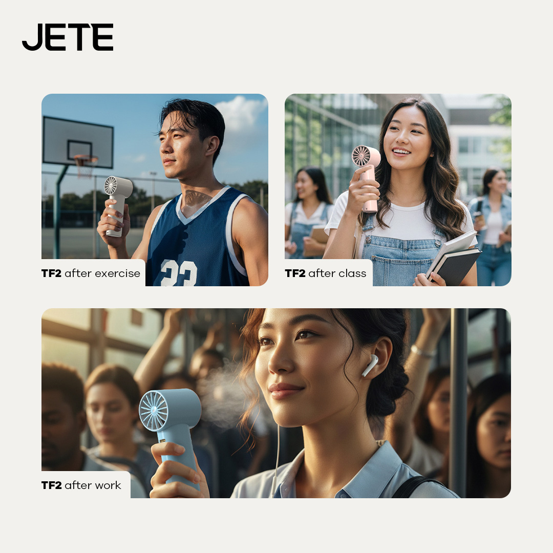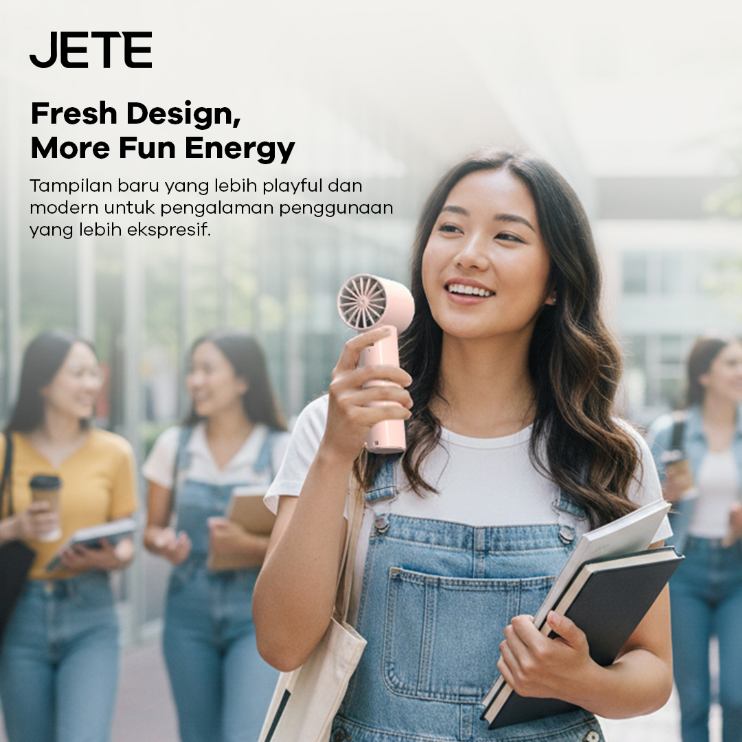 Kipas angin mini portable JETE TF2 hadir dengan desain yang lebih baru dan playful. Membawa desain yang semakin modern dan keren. Ringkas, nyaman digenggam, dan pas dibawa ke mana saja maupun dimasukkan ke dalam tas saat beraktivitas.