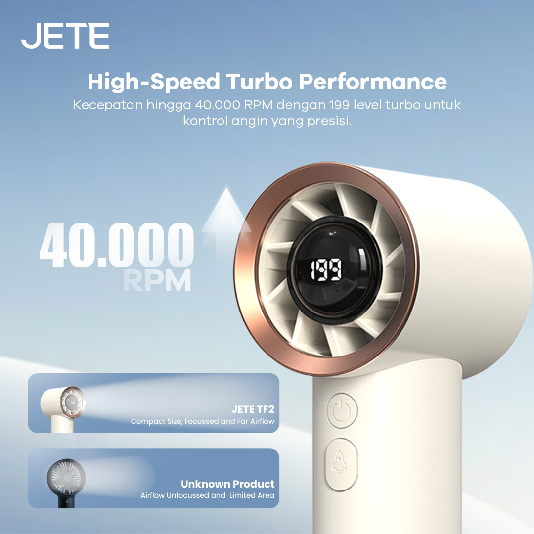 JETE TF2 menawarkan performa kuat berkat fitur turbo yang bisa disesuaikan hingga level 199 dan motor berkecepatan tinggi mencapai 40.000 RPM. Kombinasi ini menjadikannya pilihan praktis untuk mendapatkan kesejukan yang maksimal.