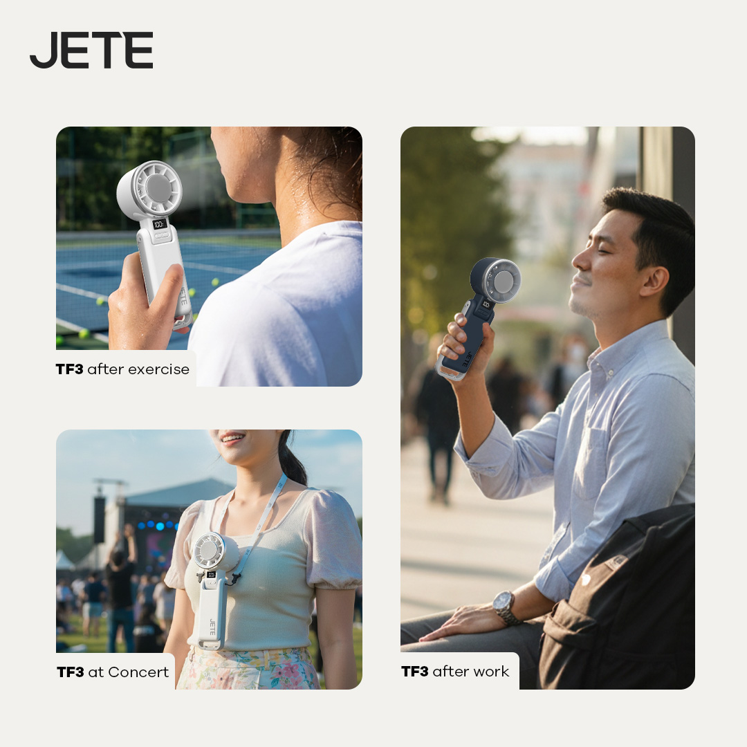 JETE TF3 adalah kipas angin mini yang menghadirkan sensasi kesegaran optimal dengan dukungan turbo fan dan desain honeycomb. Penggunaan mudah, desain ringkas dan praktis, jadi pilihan terbaik untuk mendinginkan suasana.