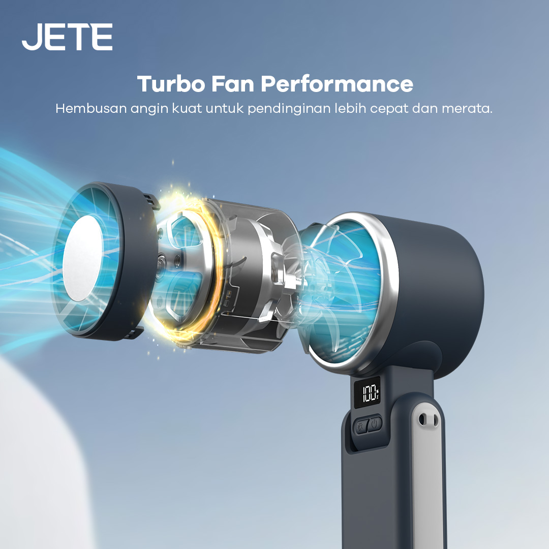 Fitur turbo fan yang disematkan pada kipas angin mini JETE TF3 ini menjadikan embusan udara semakin kuat dan kencang. Membuat proses pendinginan lebih cepat dan merata ke berbagai sisi untuk menghadirkan kenyamanan dan kesejukan yang optimal di setiap penggunaan.