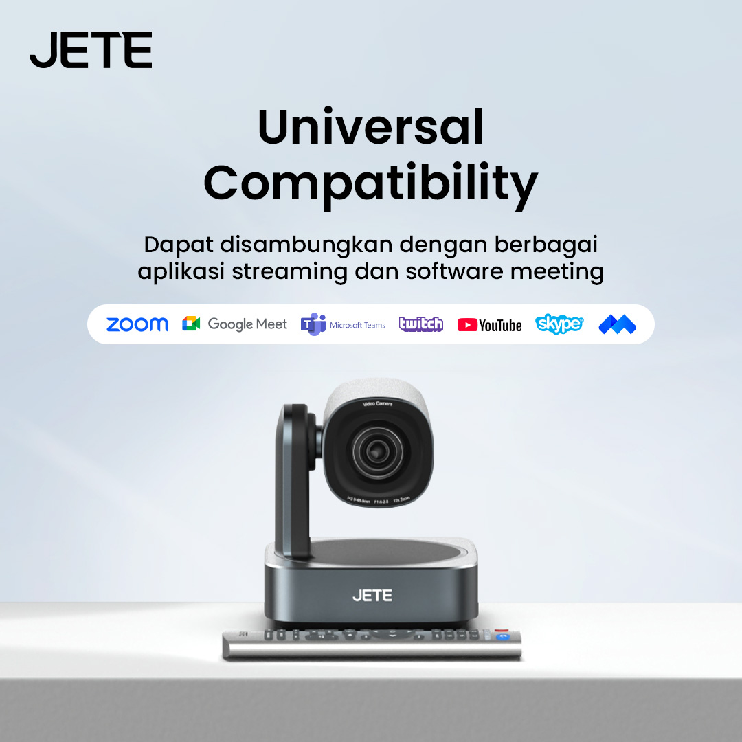 Selain kompatibel di berbagai sistem operasi, JETE PTZ terbaru juga mendukung untuk penggunaan bersama aplikasi streaming maupun software meeting terbaik. Mulai dari Zoom, Google Meet, Microsoft Teams, Twitch, Youtube, dan lainnya.