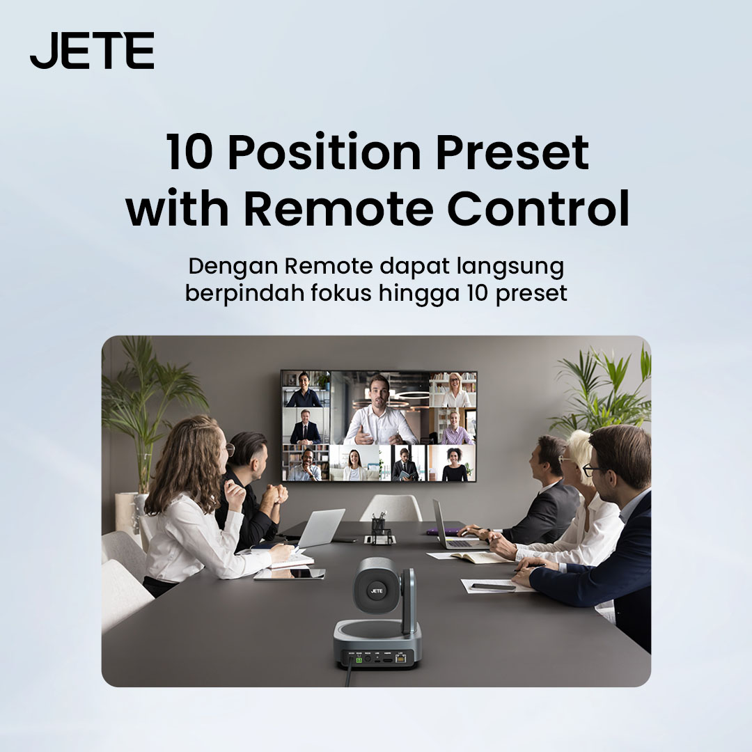 Adanya format 4K Ultra HD pada kamera JETE PTZ terbaru, menghadirkan gambar yang benar-benar tajam, jernih, dan lebih mendetail. Sangat direkomendasikan untuk meeting online atau konferensi penting bagi bisnis untuk hasil terbaik dan minim gangguan.