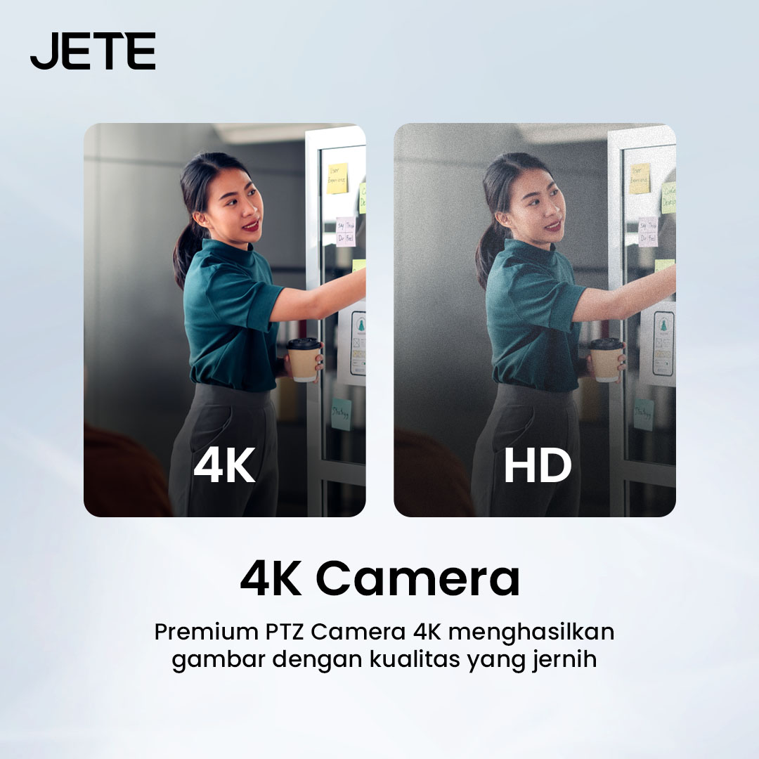 JETE PTZ terbaru ini menggunakan kamera 4K. Membuat hasil video yang ditangkap terlihat jernih dan jelas. Menampilkan bagian-bagian terpenting jadi lebih menojol dan membuat meeting online semakin nyaman tanpa terlewat.