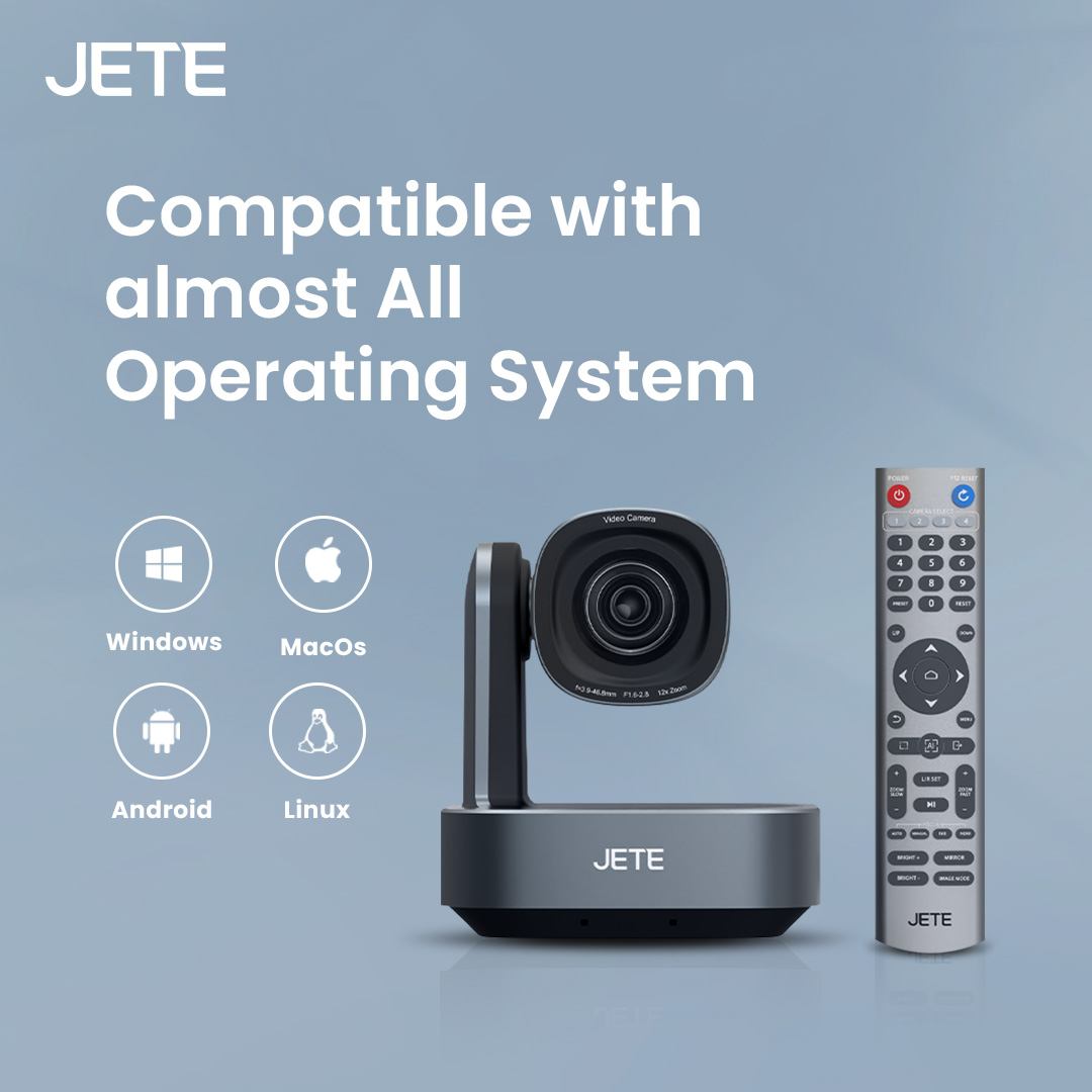 Kamera JETE PTZ kompatibel dengan berbagai sistem operasi pada perangkat komputer. Mulai dari Windows, MacOS, Android OS, hingga Linux. Tanpa memerlukan instalasi dan software tambahan, pengguna bisa langsung mengaplikasikannya untuk meeting online.