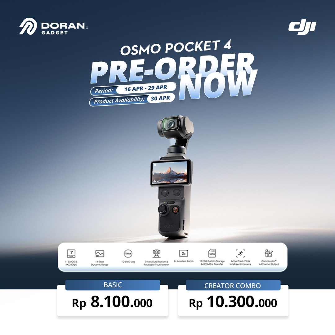 Berikut seri produk Osmo Pocket 4 yang dijual di Doran Gadget. Dapatkan banyak keuntungan Free ongkir seluruh Indonesia khusus pembelian di Doran Gadget